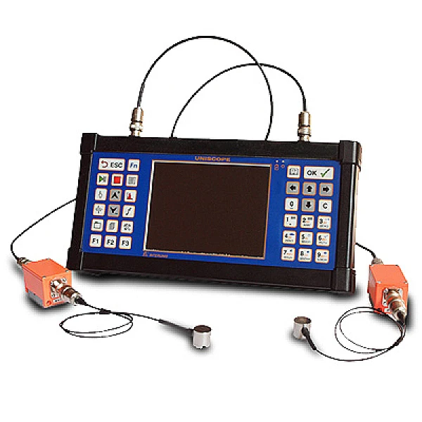 UNISCOPE - двухканальная портативная акустико-эмиссионная система, которая опционально может быть укомплектована дополнительными блоками: 1) Виброметр 2) Тензоизмеритель 3) Акустический течеискатель.