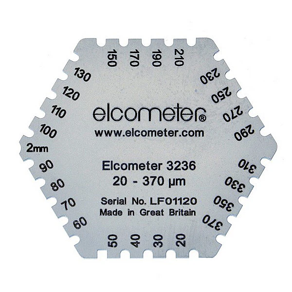 Гексагональные гребенки Elcometer 3236 позволяет ровно и красиво наложить поверхность с необходимой толщиной. Если нанесения окажется слишком много это может принести ущерб самой конструкции при высыхании. Соответственно придется тратить много денег и ресурсов чтобы переделать работу. Малое количество покрытия может плохо накрыть основание и тогда результат получится хуже, чем ожидалось. Чтобы избежать всевозможных ошибок и не повредить слой необходимо знать какая толщина будет достаточной для того чтобы эффективно, и аккуратно наложить лак на поверхность. Данные прецизионно отформованные инструменты имеют триста шесть зубцов. Они сделаны из высокопрочной и нержавеющей стали, имеют различные диапазоны и модели, что очень примечательно. Одни имеют область значений: от двадцати пяти до трех тысяч микрометров. Другие позволяют вычислить величину в пределах: от двадцати до трехсот семидесяти микрометров. Интервал некоторых варьируется: от двадцати пяти до двух тысяч микрометров.