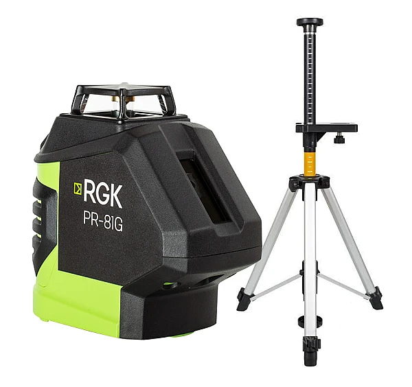 Лазерный уровень RGK PR-81G строит вертикальные и горизонтальные плоскости. Прибор может использоваться как в помещении, так и на улице, так как оснащен функцией работы в импульсном режиме для использования с приемником.