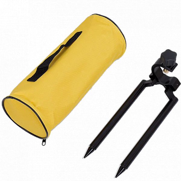 Мини-бипод используется для установки мини-вех . Для закрепления этих геодезических приспособлений используется зажим с винтом. Нижняя часть опор имеет заостренную форму, что дает возможность надежно зафиксировать их в мягком грунте.