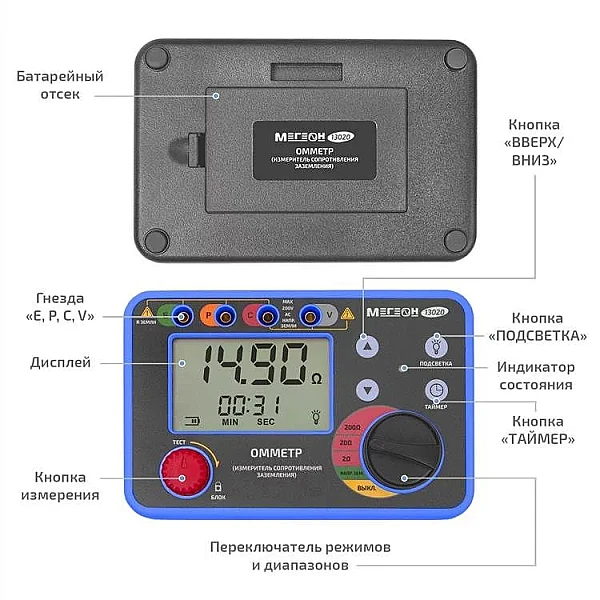 Купить Омметр (измеритель сопротивления заземления) МЕГЕОН 13020 в Екатеринбурге легко — просто позвоните по телефону: 8-800-551-11-01
