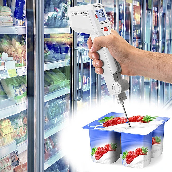Пищевой ИК-термометр BP5F можно гибко использовать в различных областях. Для областей производства, обработки и логистики пищевых продуктов BP5F может предложить точно измеренные значения для контроля и мониторинга температуры. Независимо от того, выполняете ли вы бесконтактные измерения или используете устройство в качестве проникающего термометра - измерения выполняются быстро и без затруднений, чтобы обеспечить поддержание требуемой температуры для соответствующего продукта питания. При транспортировке свежей рыбы, замороженных, молочных или других свежих продуктов не следует прерывать цепочку холодной температуры. Во время получения товаров, хранения и реализации, BP5F будет надежным помощником при контроле установленных значений температуры пищевых продуктов – например, идеально подходит для использования в супермаркетах, логистических складах.