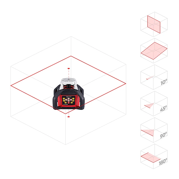 Лазерный нивелир RGK SP 610 имеет впечатляющие технические характеристики и весьма привлекательную стоимость, так что вы можете использовать его для решения самых ответственных задач в помещении или на строительной площадке без лишних затрат времени и рабочей силы. Лазерный луч прибора вращается со скоростью до 600 оборотов в минуту, обеспечивая построение в пространстве плоскости с точностью 10 мм на 100 метров. Вы можете вручную выбирать скорость вращения луча в режимах 0, 300 или 600 оборотов в минуту, задавать направление вращения и пользоваться режимами сканирования или проецирования точки. Пульт дистанционного управления позволит вам переключать режимы работы, а также включать и выключать свой лазерный нивелир RGK на расстоянии.