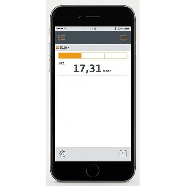 Testo 510i поддерживает связь с мобильными девайсами на базе Android или iOS по беспроводной технологии Bluetooth 4.0. Все полученные данные передаются в приложение “Smart Probes”, в которое встроены различные программы и режимы замеров для, например, проверки на падение давления с сигнализацией неисправностей или теста по нескольким точкам.