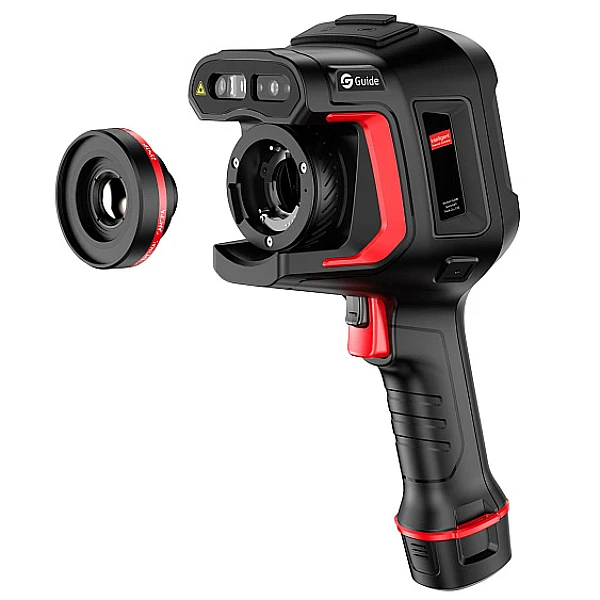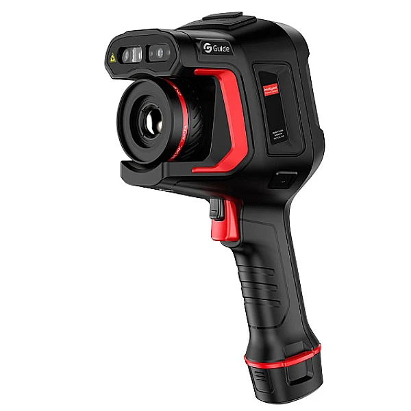 Тепловизор Guide H6 (Hammer Series) оснащён детектором с разрешением 640 x 480 пикселей и чувствительностью 40 мК, частота кадров 30Гц. Диапазон измерения температуры -40°C +150°C, 0°C +650°C с автоматическим переключением режимов работы, 5 режимов фокусировки, цифровое увеличение 1.1x до 20x. Тепловизор оснащён 8 мегапиксельной камерой, есть функция наложения изображений, фото с камеры видимого спектра на термограмму, в результате получается более чёткое ик-изображение за счёт прорисовки краёв объектов. В комплекте с камерой два аккумулятора, зарядки хватает на 4 часа работы.