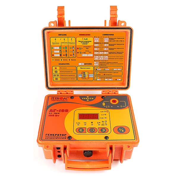 Комплект оснащен новейшим компактным автономным генератором АГ-108 со встроенными элементами питания, дисплеем и встроенной индукционной антенной, для трассировки коммуникации бесконтактным способом.